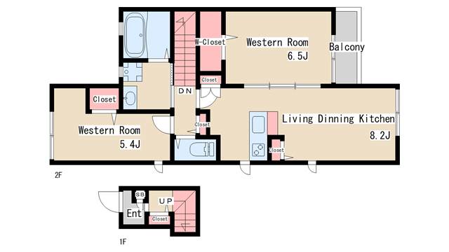 | 間取り | 2LDK | 間取り詳細 | 洋室5.4 洋室6.5 LDK8.2 |