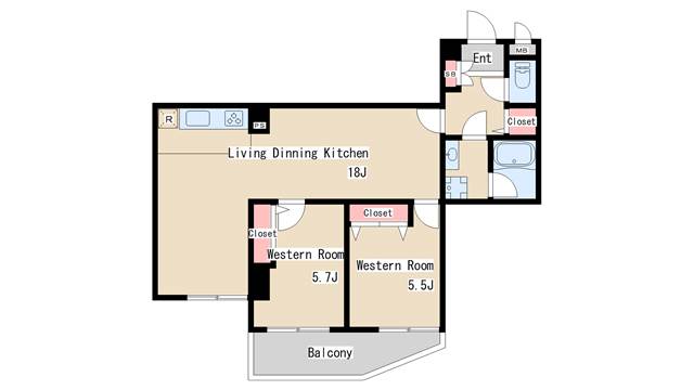 | 間取り | 2LDK | 間取り詳細 | 洋室5.5 洋室5.7 LDK18 |