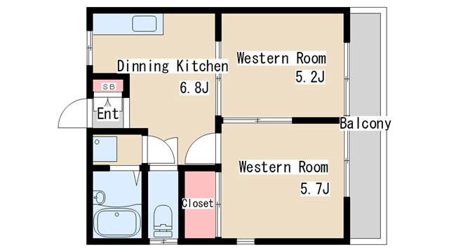 | 間取り | 2DK | 間取り詳細 | 洋室5.2 洋室5.7 DK6.8 |
