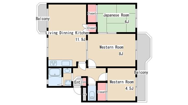 | 間取り | 3LDK | 間取り詳細 | 和室8 和室6 洋室4.5 LDK11.9 |