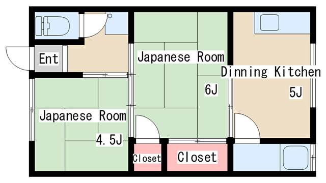 | 間取り | 2DK | 間取り詳細 | 和室4.5 和室6 |