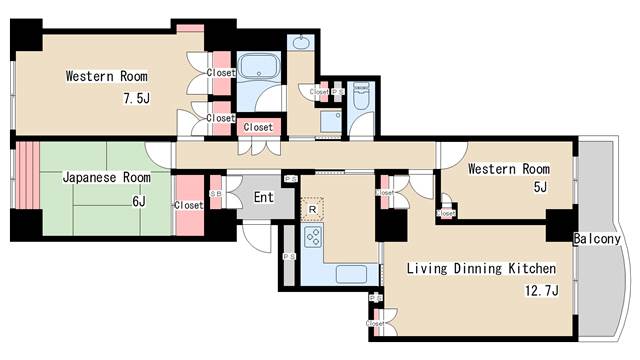 | 間取り | 3LDK | 間取り詳細 | 和室6 洋室5 洋室7.5 LDK12.7 |