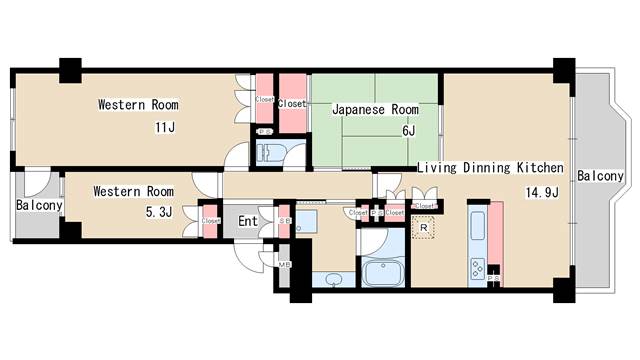 | 間取り | 3LDK | 間取り詳細 | 和室6 洋室5.3 洋室11 LDK14.9 |