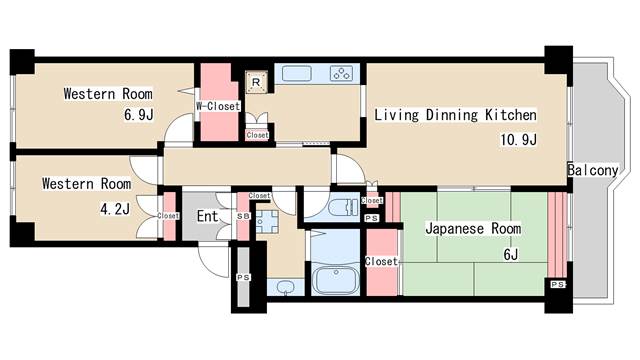 | 間取り | 3LDK | 間取り詳細 | 和室6 洋室4.2 洋室6.9 |