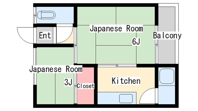 | 間取り | 2K | 間取り詳細 | 和室6 和室3 |