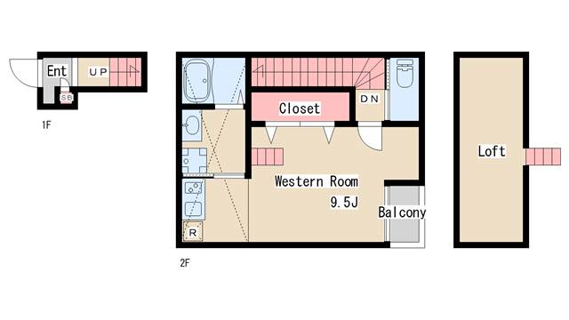 | 間取り | ワンルーム | 間取り詳細 | 洋室9.5 |