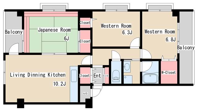 | 間取り | 3LDK | 間取り詳細 | 和室6 洋室6.3 洋室6.8 LDK10.2 |