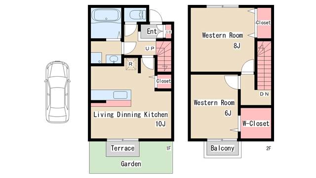 | その他・特徴 | 閑静な住宅街、二人入居可、オンライン内見可、オンライン相談可、ペット相談、陽当り良好、フローリング、メゾネット、専用庭、公共下水、公営水道、都市ガス | ||