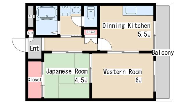 | 間取り | 2DK | 間取り詳細 | 和室4.5 洋室6 DK5.5 |