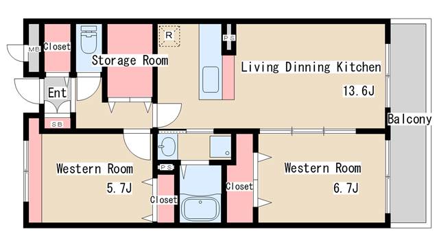 | 間取り | 2LDK | 間取り詳細 | 洋室6.7 洋室5.7 LDK13.6 |