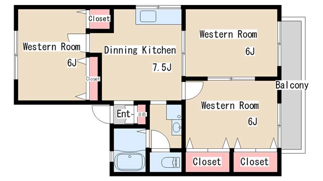 | 間取り | 3DK | 間取り詳細 | 洋室6 洋室6 洋室6 |