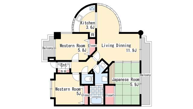 | 間取り | 3LDK | 間取り詳細 | 和室5.9 洋室5 洋室5.8 |