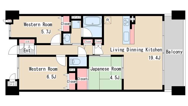 | 間取り | 3LDK | 間取り詳細 | 和室4.5 洋室5.7 洋室6.5 LDK19.4 |