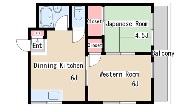 | 間取り | 2DK | 間取り詳細 | 和室4.5 洋室6 |