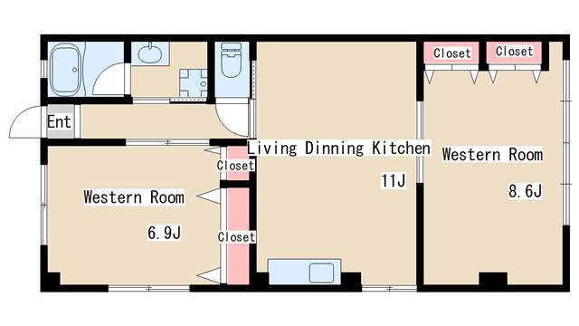 | 間取り | 2LDK | 間取り詳細 | 洋室6.9 洋室8.6 LDK11 |