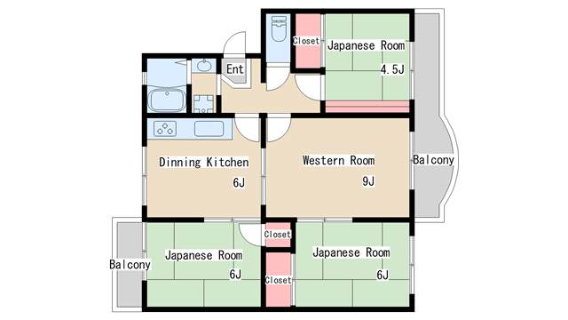 | 間取り | 4DK | 間取り詳細 | 和室4.5 和室6 和室6 洋室9 DK6 |
