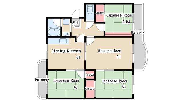 | 間取り | 4DK | 間取り詳細 | 和室4.5 和室6 和室6 洋室9 |