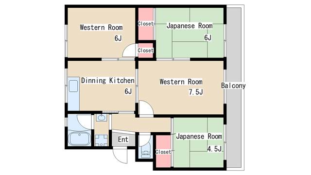 | 間取り | 4DK | 間取り詳細 | 和室4.5 和室6 洋室7.5 洋室6 DK6 |
