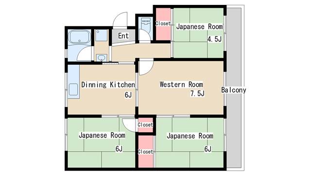 | 間取り | 4DK | 間取り詳細 | 和室4.5 和室6 和室6 洋室7.5 DK6 |