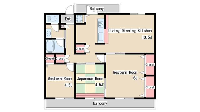 | 間取り | 3LDK | 間取り詳細 | 和室4.5 洋室4.5 洋室6 |