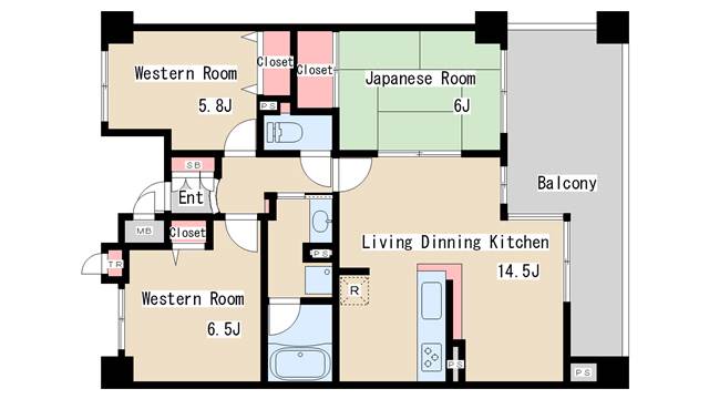 | 間取り | 3LDK | 間取り詳細 | 和室6 洋室5.8 洋室6.5 |