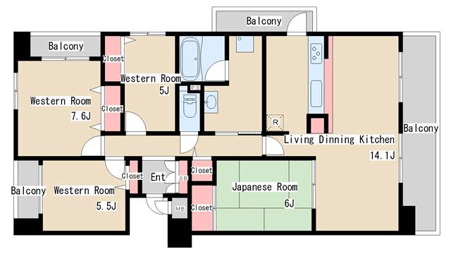 | 間取り | 4LDK | 間取り詳細 | 和室6 洋室5 洋室5.5 洋室7.6 |