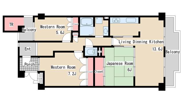 | 間取り | 3LDK | 間取り詳細 | 和室6 洋室5.6 洋室7.2 |