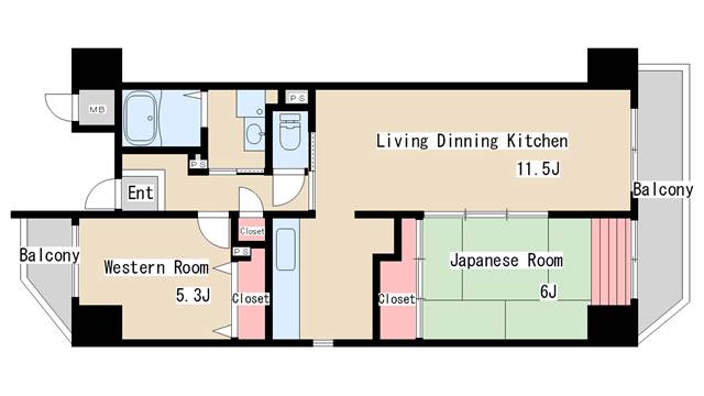 | 間取り | 2LDK | 間取り詳細 | 和室6 洋室5.3 |