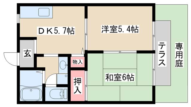 | 間取り | 2DK | 間取り詳細 | 和室6 洋室5.4 |