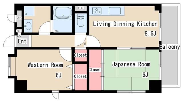 | 間取り | 2LDK | 間取り詳細 | 和室6 洋室6 LDK8.6 |