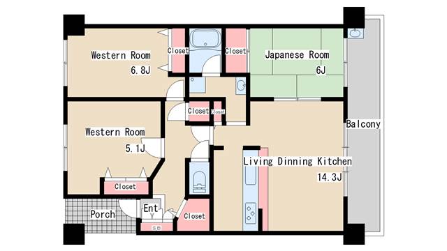 | 間取り | 3LDK | 間取り詳細 | 和室6 洋室5.1 洋室6.8 |
