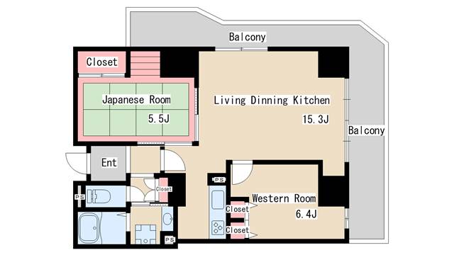 | 間取り | 2LDK | 間取り詳細 | 和室5.5 洋室6.4 LDK15.3 |