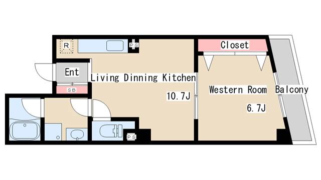 | 間取り | 1LDK | 間取り詳細 | 洋室6.7 |