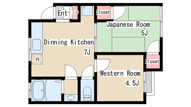 | 間取り | 2DK | 間取り詳細 | 和室5 洋室4.5 DK7 |