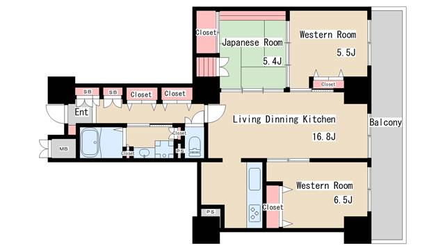 | 間取り | 3LDK | 間取り詳細 | 和室5.4 洋室5.5 洋室6.5 |