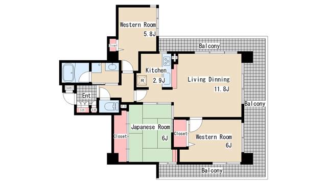 | 間取り | 3LDK | 間取り詳細 | 和室6 洋室5.8 洋室6 |