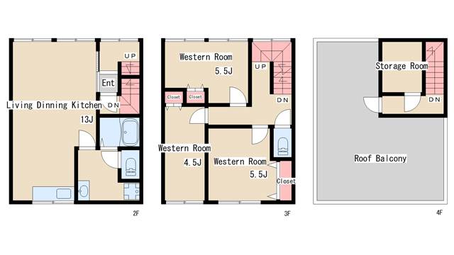 | 間取り | 3SLDK | 間取り詳細 | 洋室4.5 洋室5.5 洋室5.5 LDK13 |