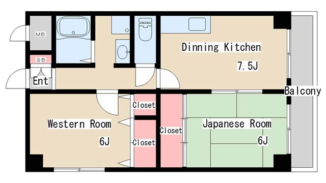 | 間取り | 2DK | 間取り詳細 | 和室6 洋室6 DK7.5 |