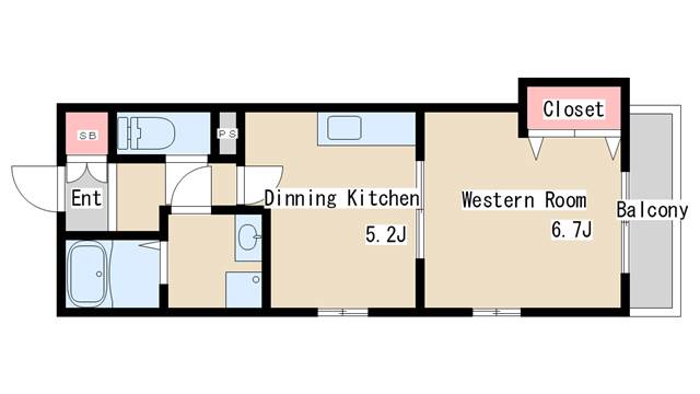 | 間取り | 1DK | 間取り詳細 | 洋室6.7 DK5.2 |