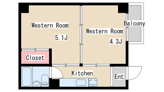 | 間取り | 2K | 間取り詳細 | 洋室5.1 洋室4.3 |
