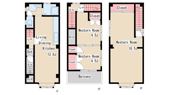 | 間取り | 3LDK | 間取り詳細 | 洋室4.5 洋室4.5 洋室18.5 |