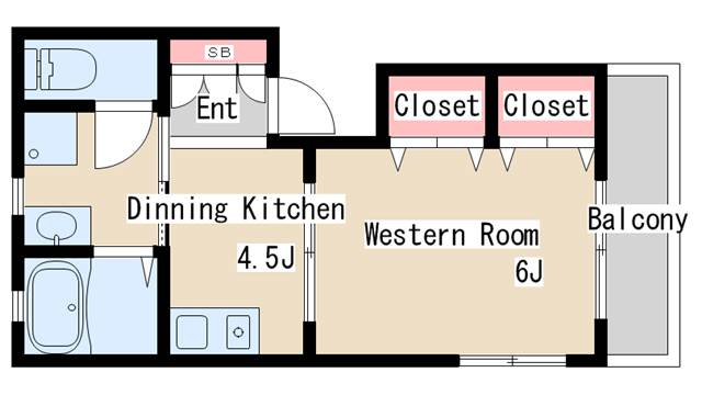 | 間取り | 1DK | 間取り詳細 | 洋室6 DK4.5 |