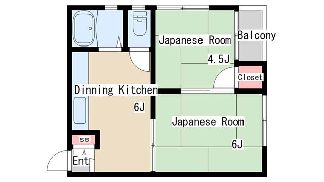 | 間取り | 2DK | 間取り詳細 | 和室4.5 和室6 DK6 |