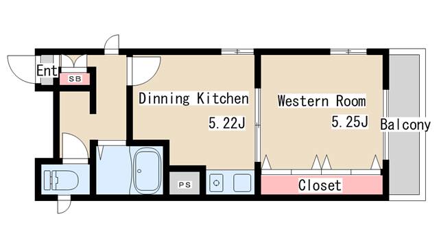 | 間取り | 1DK | 間取り詳細 | 洋室5.25 DK5.22 |