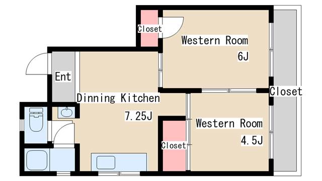 | 間取り | 2DK | 間取り詳細 | 洋室6 DK7.25 洋室4.5 |