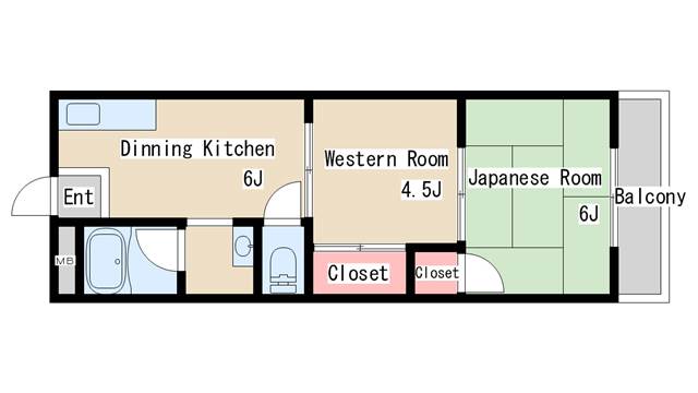| 間取り | 2DK | 間取り詳細 | 和室6 洋室4.5 DK6 |