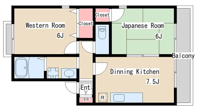| 間取り | 2DK | 間取り詳細 | 和室6 洋室6 DK7.5 |