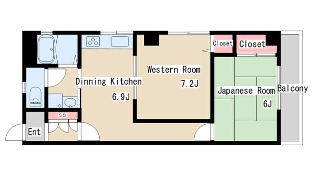 | 間取り | 2DK | 間取り詳細 | 和室6 洋室7.2 DK6.9 |