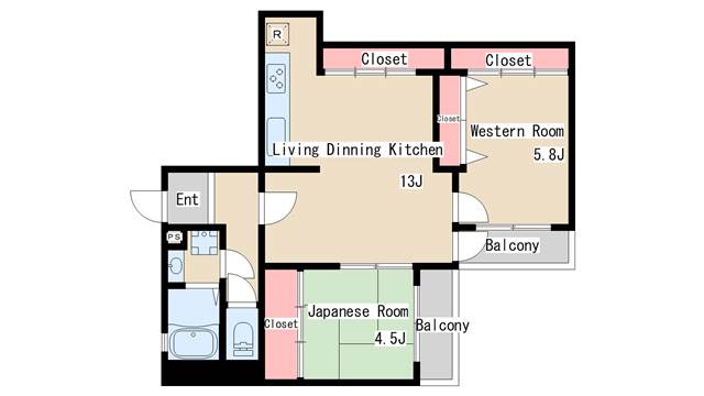 | 間取り | 2LDK | 間取り詳細 | 和室4.5 洋室5.8 |