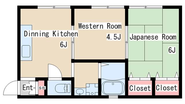 | 間取り | 2DK | 間取り詳細 | 和室6 洋室4.5 |